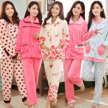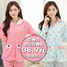 秋冬季法兰绒加厚睡衣女长袖秋款珊瑚绒开衫家居服加大码月子套装