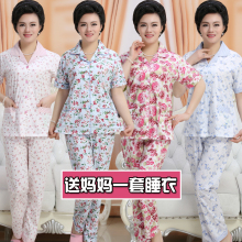 夏天短袖中老年人开衫睡衣女士夏季纯棉中年妈妈加大码家居服套装