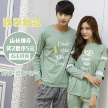 秋季新款长袖情侣睡衣女秋款韩版纯棉加大码男女士套头家居服套装