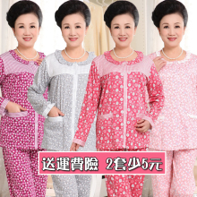 秋季中老年人睡衣女士纯棉长袖妈妈装中老年妇女开衫加大码家居服