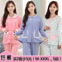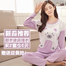 春秋季卡通女士长袖睡衣纯棉夏季圆领套头全棉家居服大码学生套装