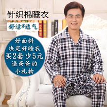 夏季中年男士长袖纯棉质睡衣春秋季中老年男式休闲家居服全棉套装