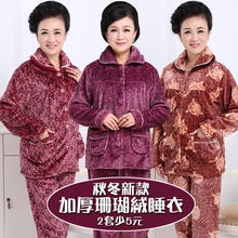 秋冬季中老年人珊瑚绒睡衣女士中年冬款法兰绒老人长袖家居服套装