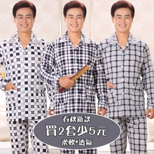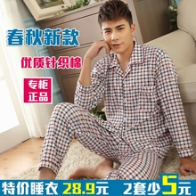 男士格子睡衣 纯棉长袖春秋季加肥加大码棉质中老年人家居服套装