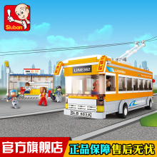 小鲁班拼装积木 儿童益智塑料6岁男孩玩具城市巴士拼装模型