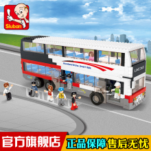 小鲁班拼装积木 模拟城市系列豪华双层巴士儿童益智塑料玩具