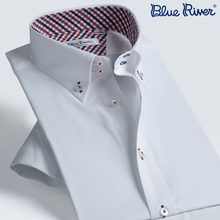蓝河夏装高贵纯棉男士白色衬衫 男短袖商务正装免烫职业男装衬衣