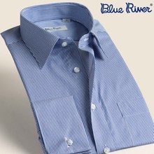 blueriver蓝河新款高贵男士衬衫中年长袖蓝白色条纹商务休闲衬衣