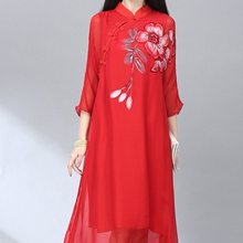 2017春夏装新款民族风大码女装立领盘扣宽松旗袍中国风真丝连衣裙