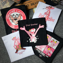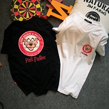 港风T恤男韩版原宿风卡通粉红豹情侣装夏装短袖T恤女学生宽松半袖