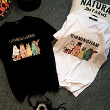 潮牌情侣装夏装短袖t恤女宽松大码学生半袖纯棉可爱印花班服定制