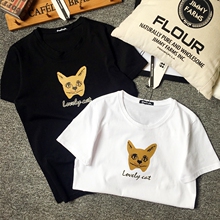 2017夏季新款情侣装夏装短袖T恤女 日系可爱印花学生大码宽松半袖