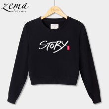 Zema卫衣女套头短款韩版学生宽松长袖上衣高腰露脐字母印花外套湦