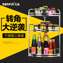 仁品 厨房用品置物架不锈钢壁挂调味调料架三角架转角架2层收纳架