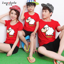尊卡拉 亲子装夏装2017新款一家三口全家母女子装红色家庭短袖T恤