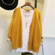 外单好货!包芯纱小纽扣针织开衫 宽松显瘦纯色短款毛衣外套 女