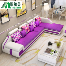 妮尔美布艺沙发组合客厅家具简约现代实木沙发U形转角可拆洗紫色