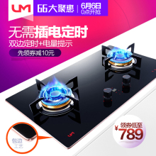 um/优盟 UZ212D燃气灶嵌入式天然气液化气双灶具台式触控定时灶