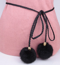 【天天特价】包邮韩版百搭装饰编织绳线细 女 兔毛球女士腰绳腰链