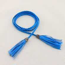 包邮韩版百搭蝴蝶结辫子绳子打结装饰腰链女士编织腰带流苏细皮带