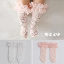 W138韩国代购正品花边镂空婴儿童袜子 宝宝中筒袜 百日搭配公主袜