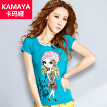 卡玛娅2017夏季女装卡通图案短袖棉T恤修身半袖白色体恤女2892
