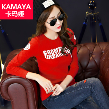 卡玛娅t恤女长袖2017秋装新款韩版修身印花棉打底衫女秋女士t恤