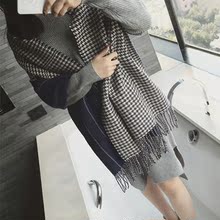 秋冬季韩版千鸟格图案双面加厚百搭仿羊绒围巾女保暖长款披肩两用