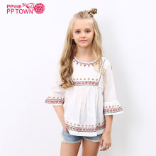 巴巴小镇女童喇叭七分袖衬衫春秋季新款儿童装民族风绣花衬衣3406