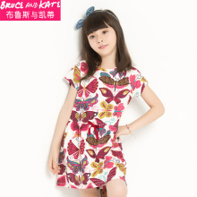2017新款夏装儿童装 女童蝴蝶印花纯棉短袖连衣裙中大童宝宝裙子