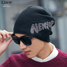 2015新款韩版双层加绒男士针织毛线帽贴布时尚套头帽冬季保暧