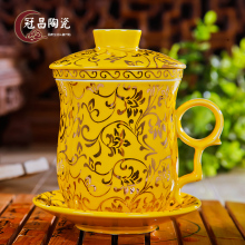 冠昌景德镇正品陶瓷茶杯四件杯办公杯个人杯会议杯带过滤色釉金边