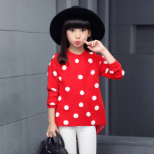 韩版女童装2017秋季新款圆点中长款毛衣 秋款针织长袖套头上衣