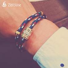 欧美个性时尚潮8mm尼龙救生绳潮男女皮绳手链多层手绳情侣首饰品