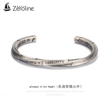 欧美时尚潮男钛钢光面凹型手镯简约风男女情侣手镯开口刻字手环