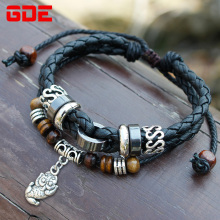 男士手链日韩情侣饰品皮绳编织个性复古多层简约学生手链女刻字
