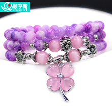 多层水晶手链女 韩版时尚紫水晶手环串珠狐狸手链甜美手饰品配饰