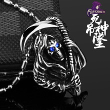 非主流!韩版个性死神骷髅头吊坠男士项链 霸气钛钢朋克挂件饰品