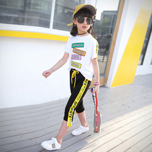 女童套装2017新款夏装中大儿童韩版字母t恤女孩潮流七分裤两件套
