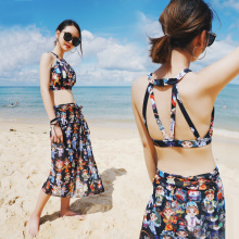 比基尼三件套 泳衣女性感露背小胸聚拢显瘦高腰裙式新款沙滩泳装