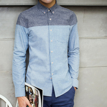 2016秋冬季男衬衫修身纯棉拼接衬衣青年学生显廋韩版男装长袖潮流