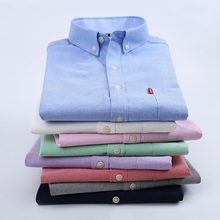 春秋季新款男士水洗牛津纺长袖衬衫潮男商务休闲正装纯色免烫衬衣