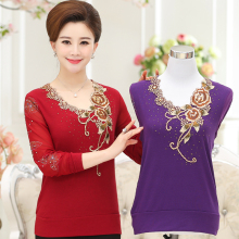 中老年女装打底衫中年妈妈装春季妇女上衣长袖针织衫T恤小衫大码