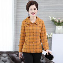 2017品春秋装中年女装中老年妈妈装上衣长袖格子外套短款宽松