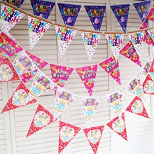 生日三角旗派对现场装扮布置用品party装饰子拉挂旗彩旗横幅拉条