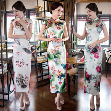 旗袍长款2017新款丝绸双层复古改良修身旗袍连衣裙夏宴会走秀礼服