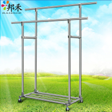 邦禾 304不锈钢晾衣架 落地 室内阳台双杆晒衣架 简易移动挂衣架