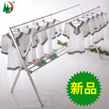 晾衣架落地折叠室内X型不锈钢阳台伸缩双杆凉衣架户外晒被子架