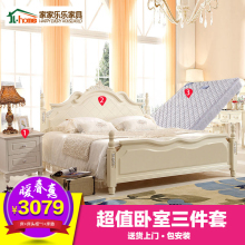 欧式卧室成套家具套装 韩式田园双人床+床头柜+床垫组合套餐