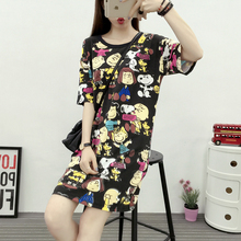 加肥加大码女装韩版中长款连衣裙胖mm显瘦宽松大版短袖T恤女衬衣